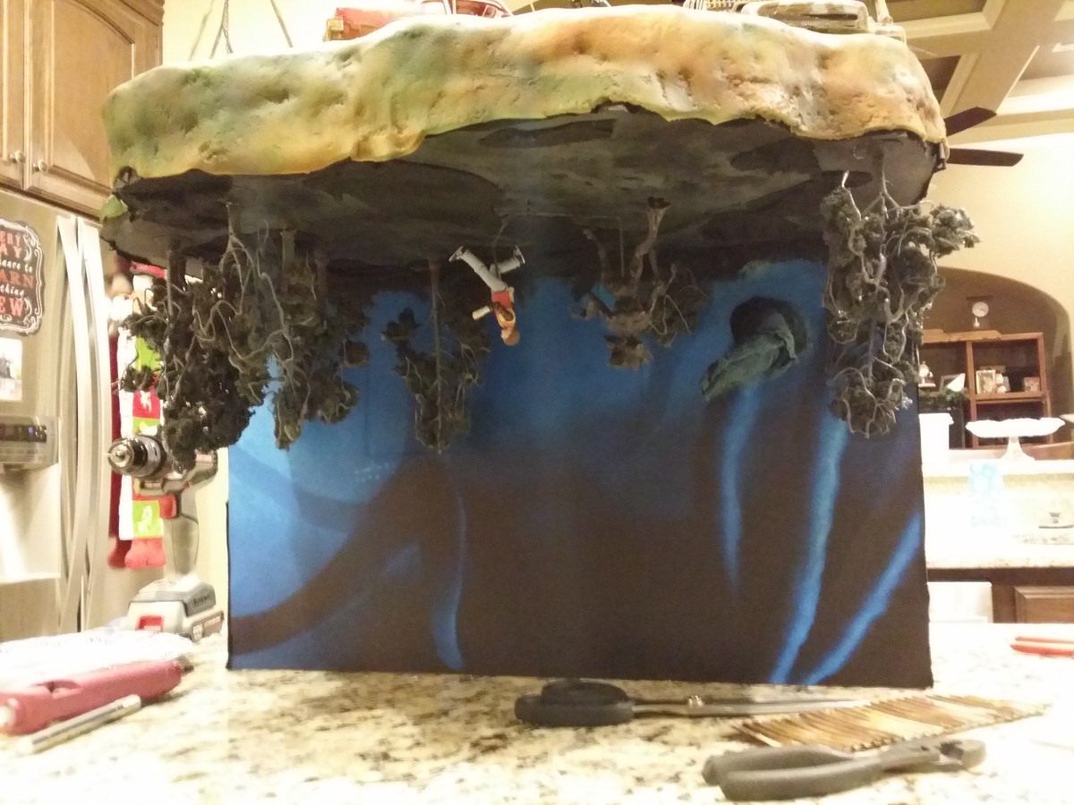 drawings of the tunnels for the wall. We had black light on the upside down half of the party, it gave it a nice pop. The