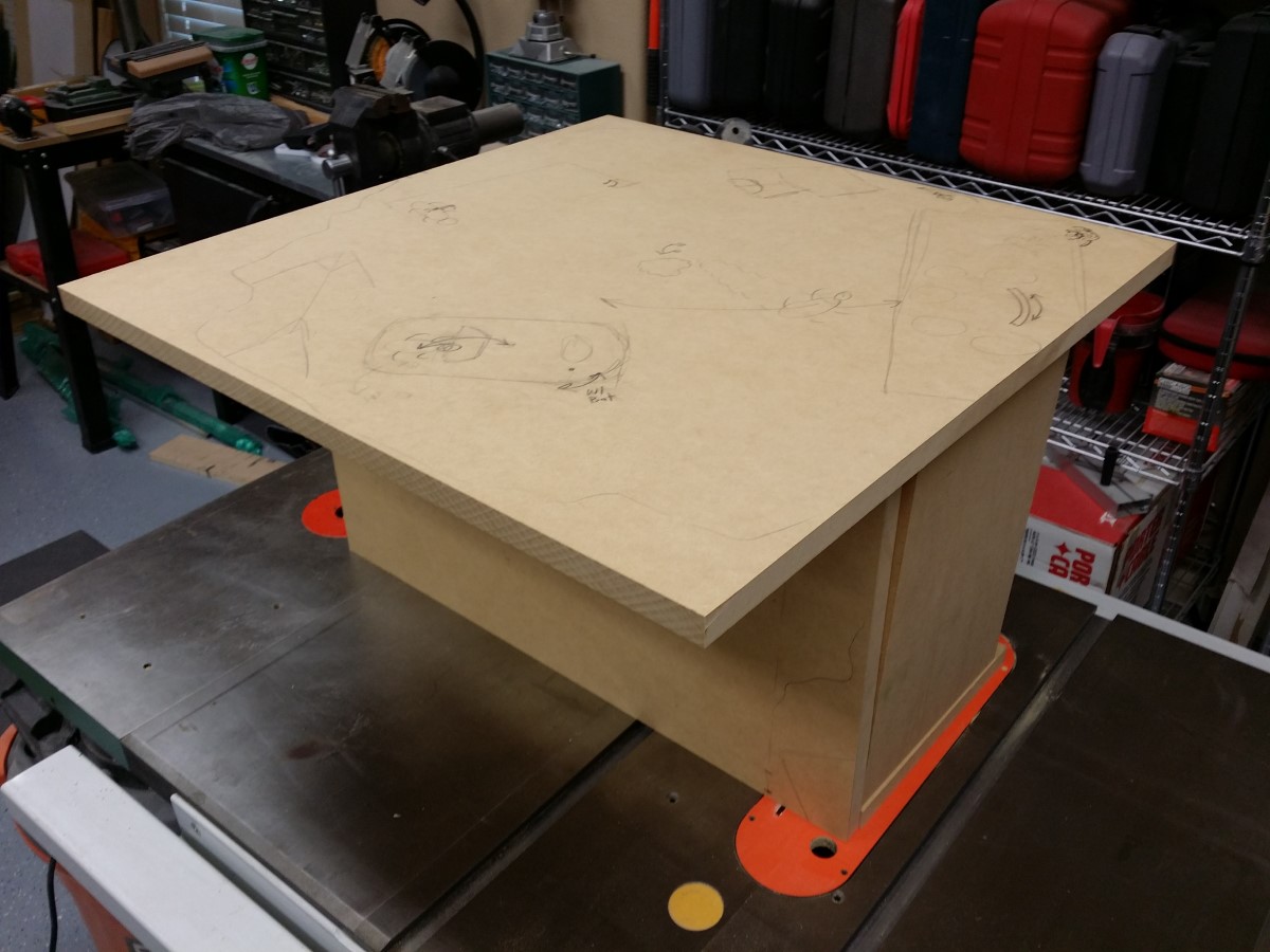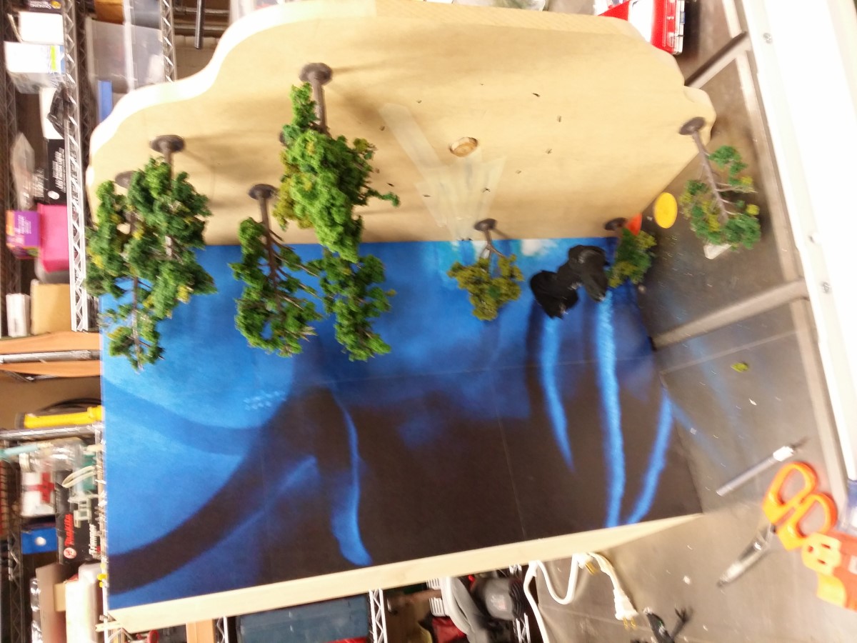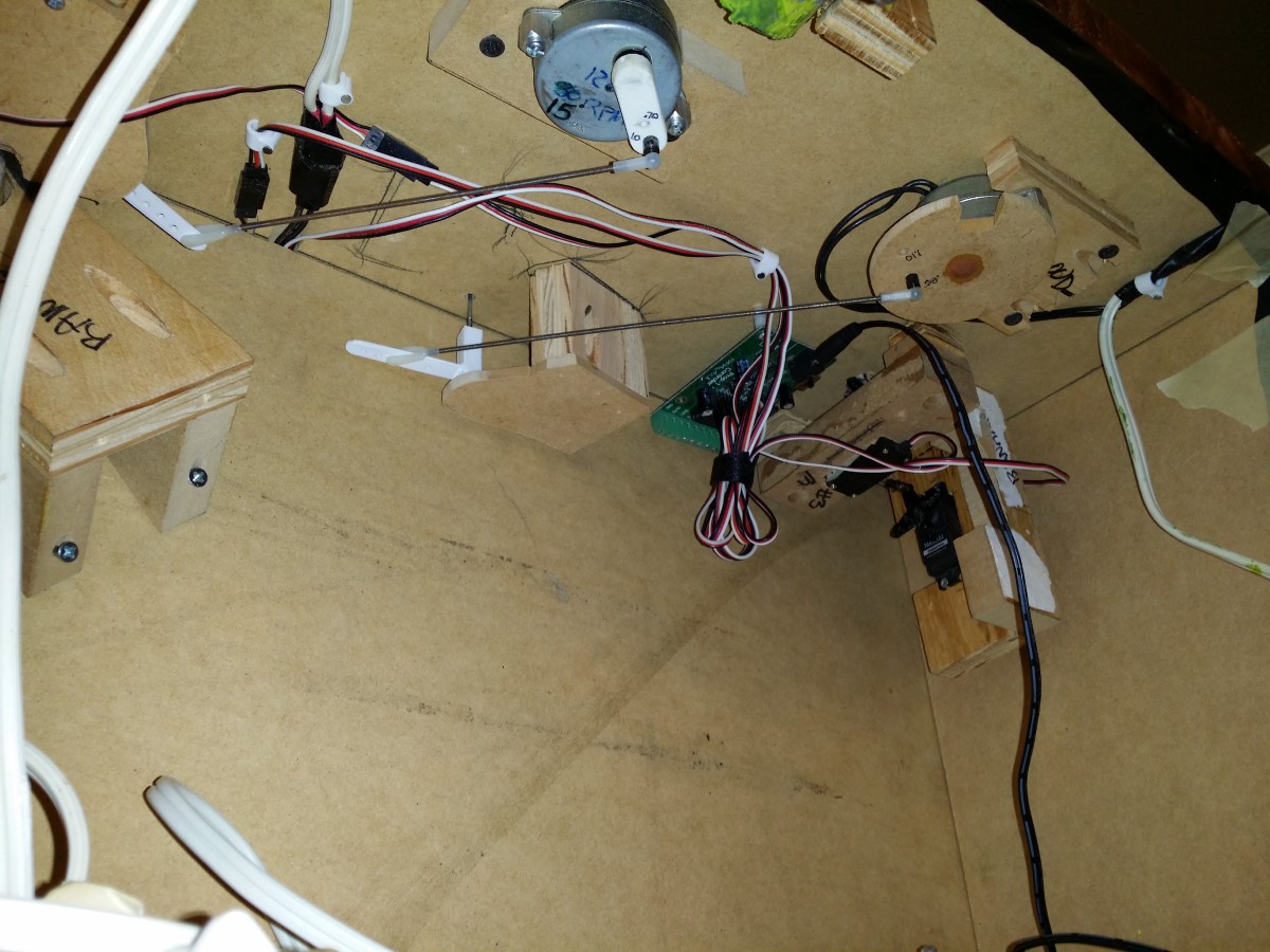 servos and 4 timing motors moving the characters. My daughter did the crayon