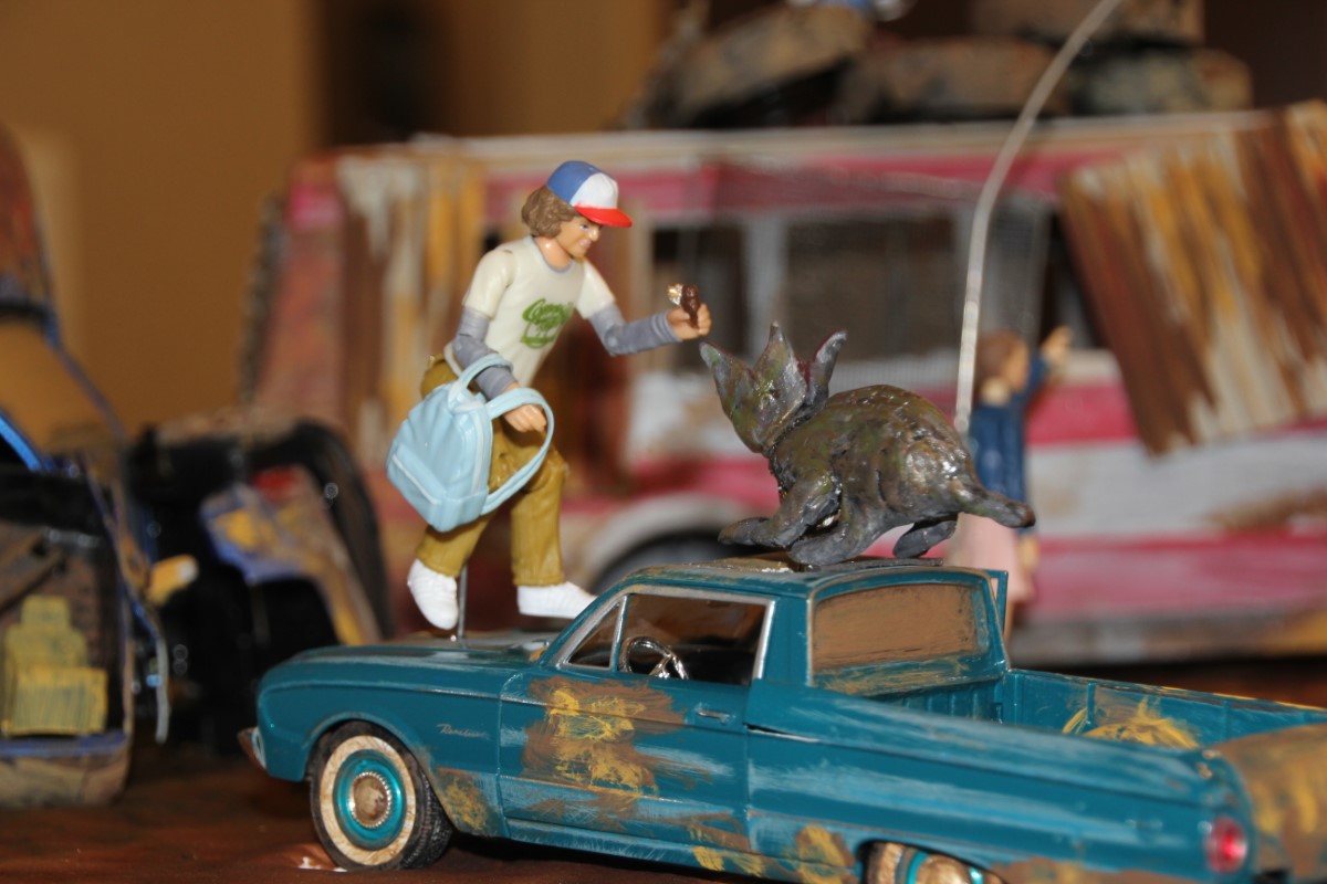 junk yard. Dustin is trying to feed d'Artagnan a 3