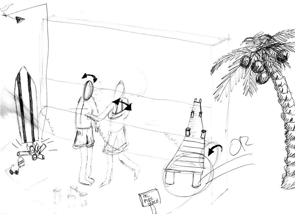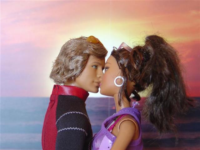 Having found the Barbie's we wanted all we needed was an idea with some motion. After a few sketches we came up with something doable. Sketch 1, Sketch 2, Sketch 3, Sketch 4. This is the gist of the cake. Marty turns left and right while Kathy move forward and back, they meet kissing in front of a beach sunset. We couldn't do the whole cake as we had to transport it to put it back together and finish it there. That made it a bit more interesting but the family was there to help :).
