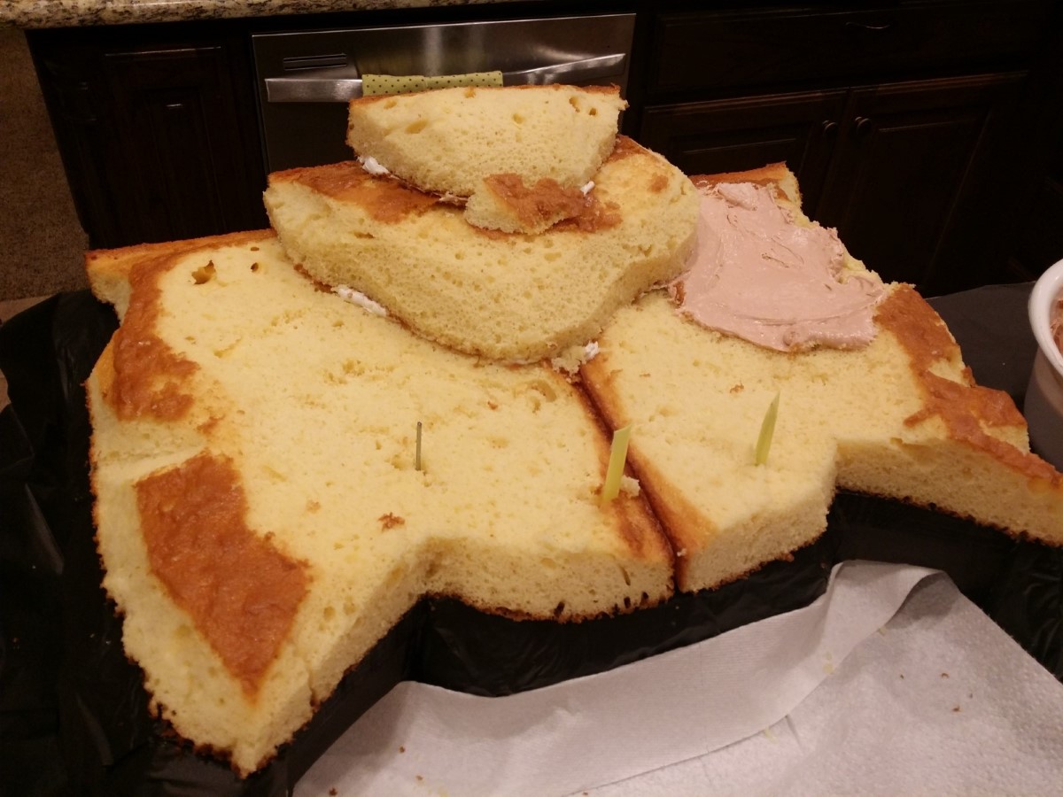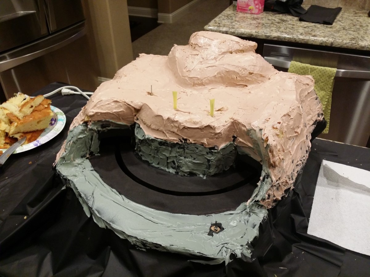 movements this time. 3 yellow box cakes, cream cheese frosting and
