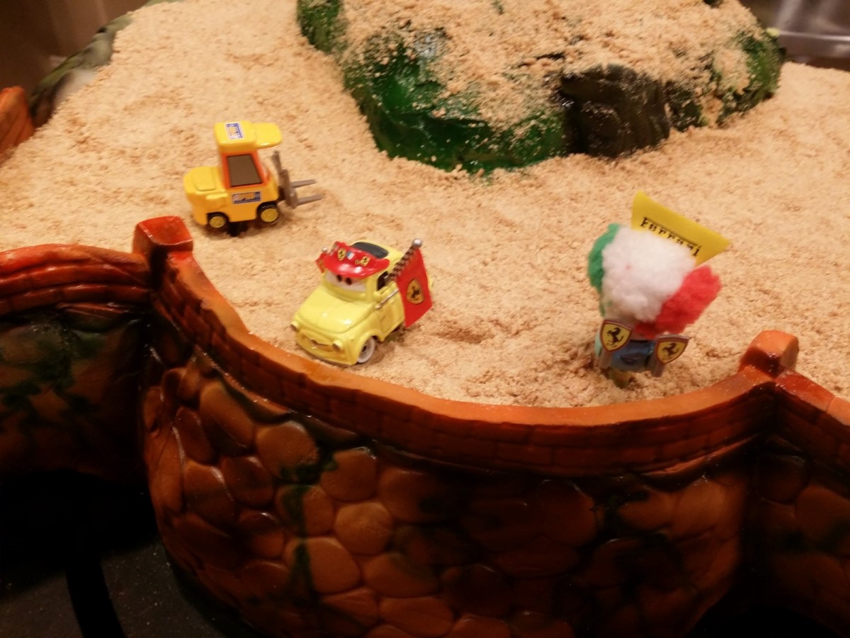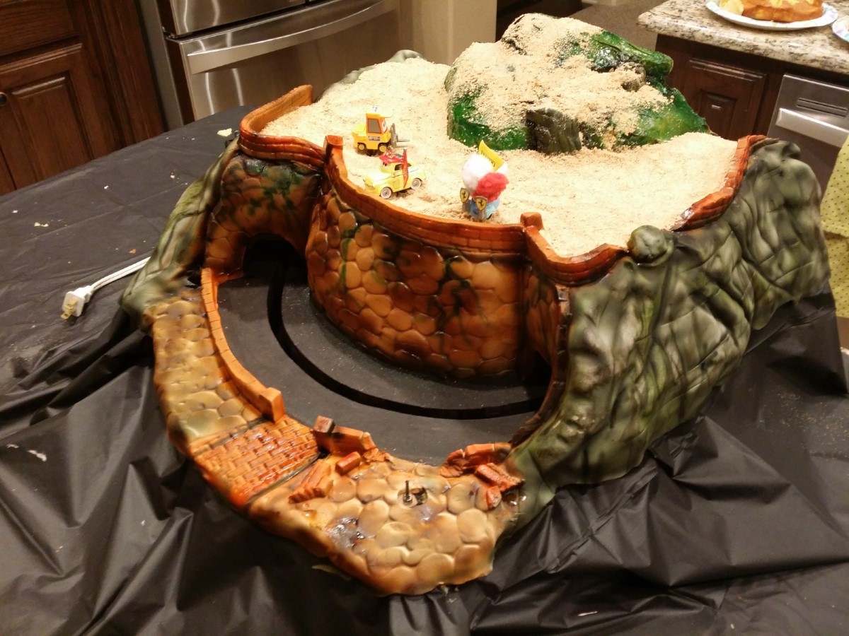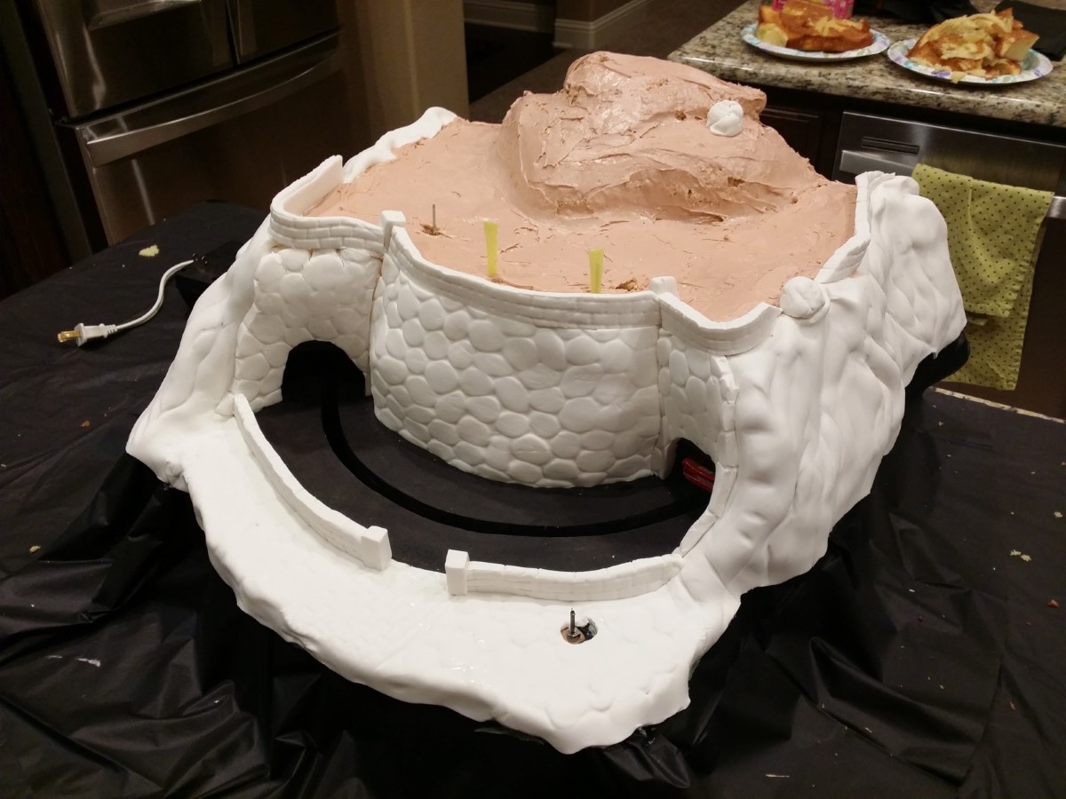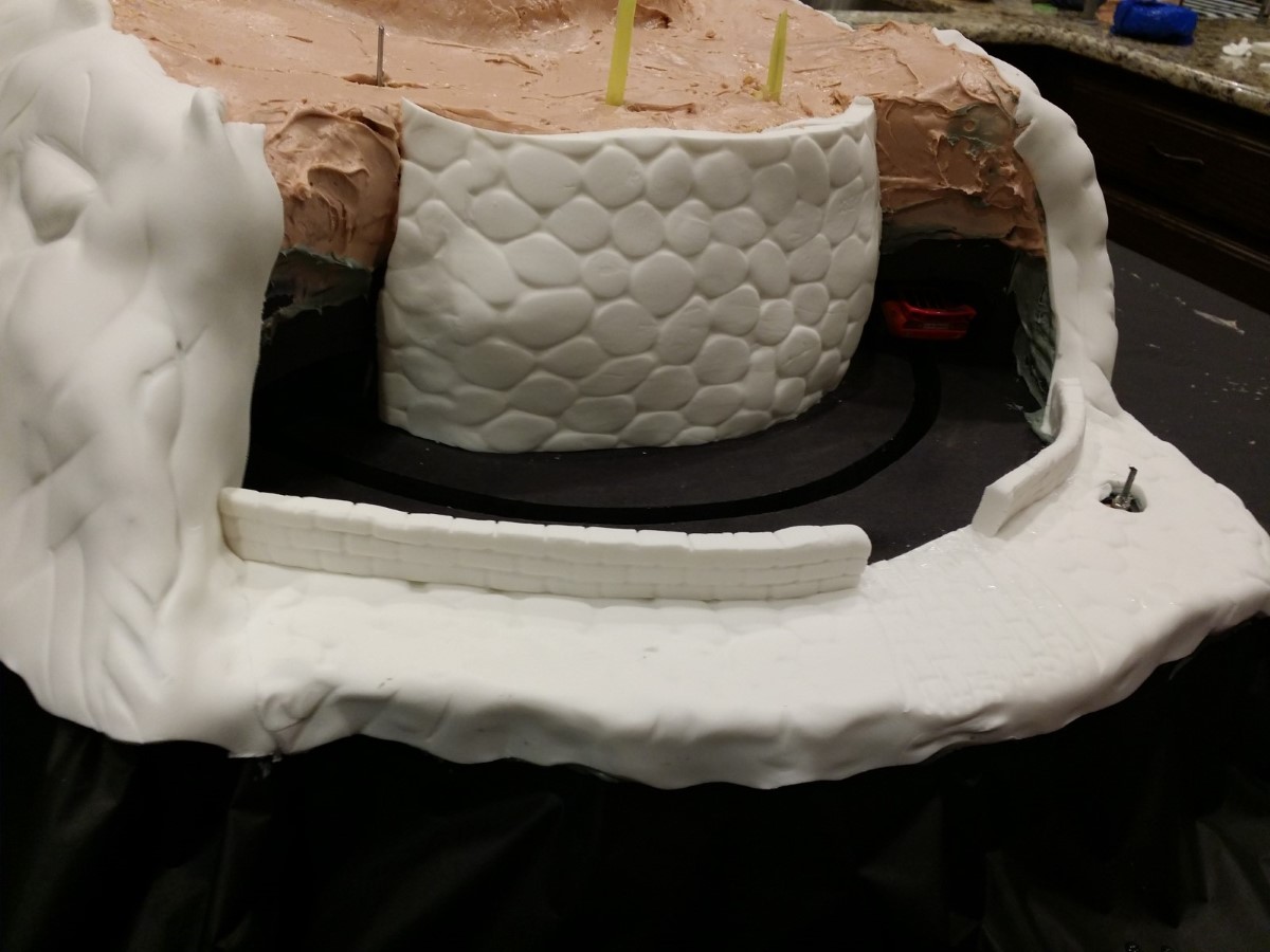 vanilla fondant. Mostly flat with graham cracker crumbs. Extra fondant