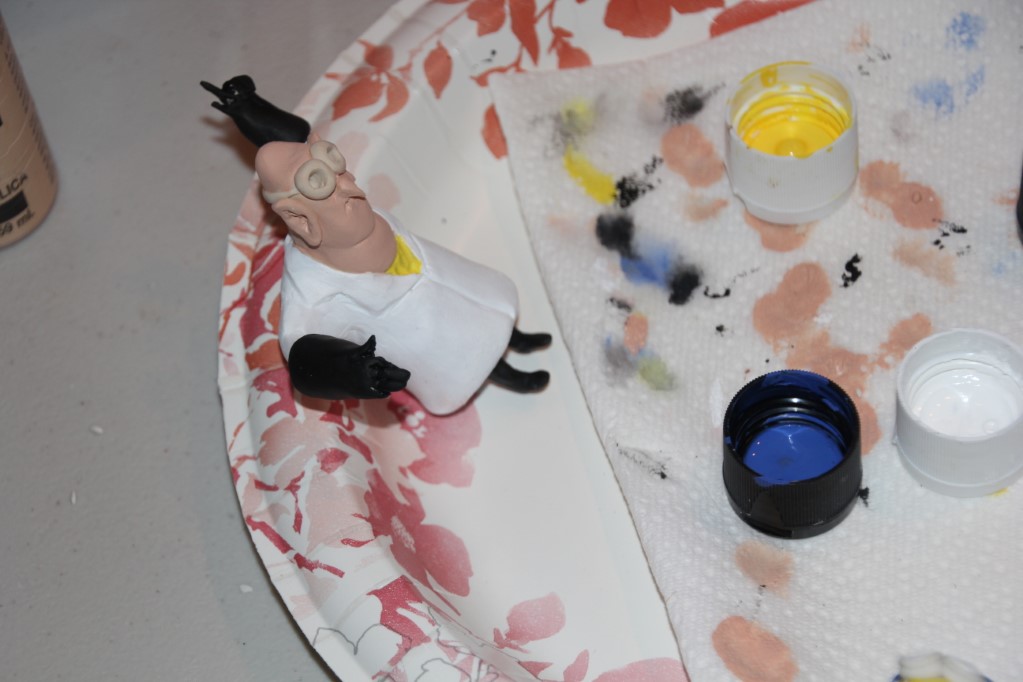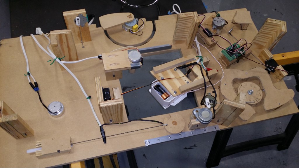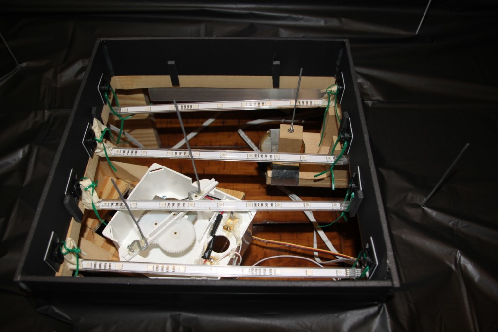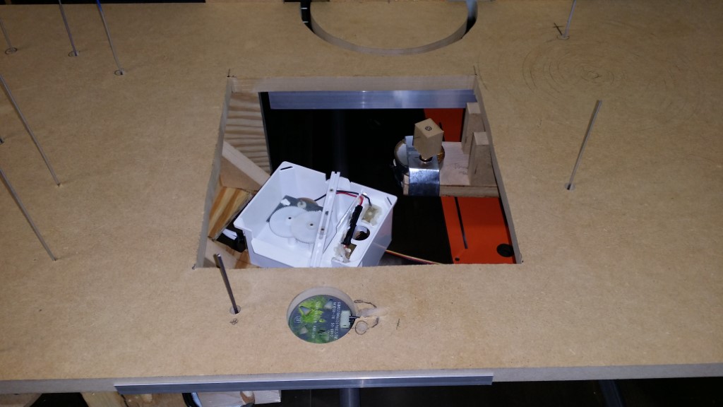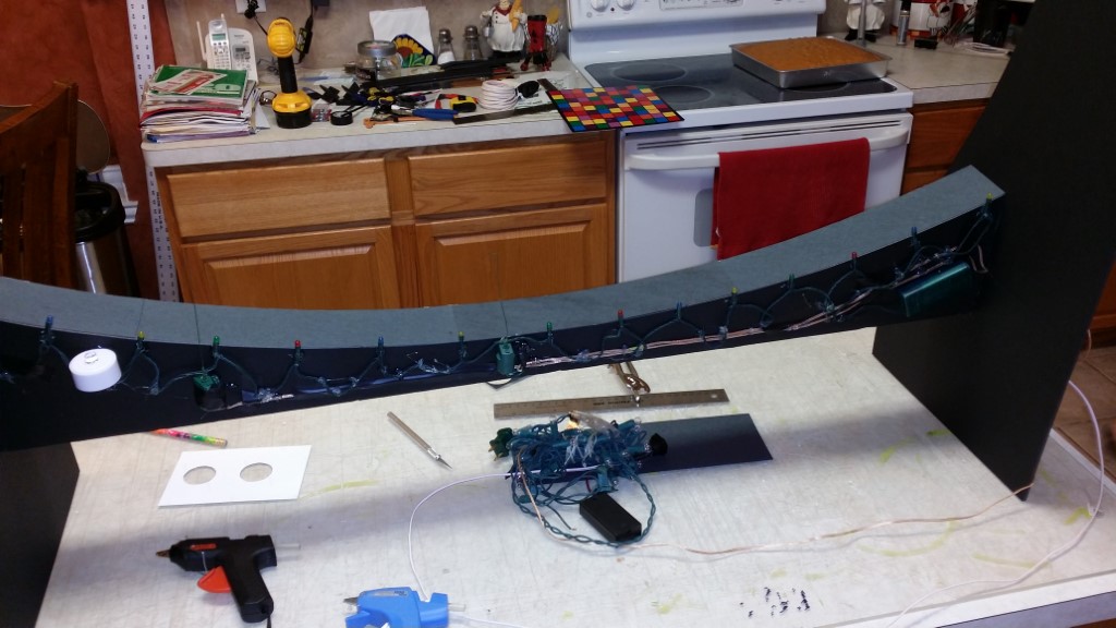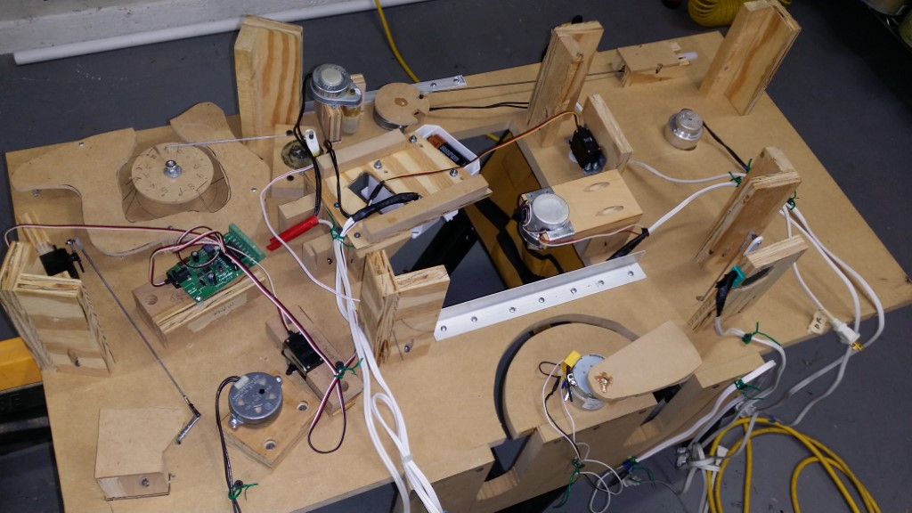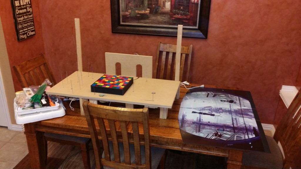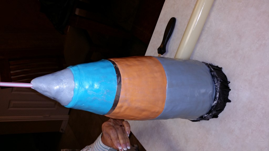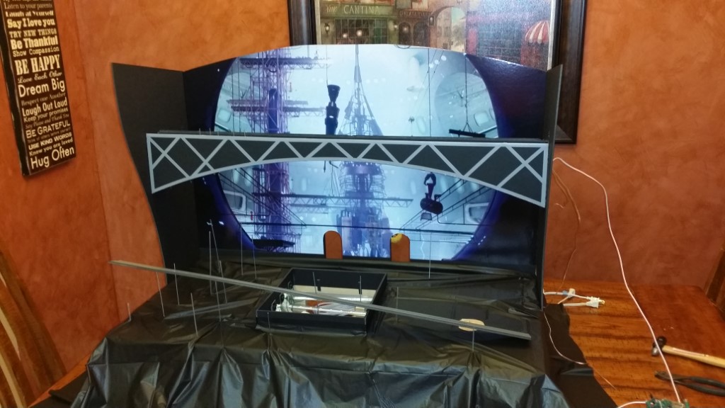 This is a Despicable Me cake for our daughter's 9th birthday. She had a disco dance party this year so I tried to make the cake match the theme. Strangely we decided on Despicable Me after seeing #2, but somehow not a single character from the 2nd movie made it into the cake, except for some minion costumes. The basis is that they are having a birthday dance party of their own in Gru's underground lair. Dr. Nefario is the DJ while Gru, the girls and the minions party. The minions of course are doing their own strange things. One is still floating happily on the ceiling. Another is swinging on the happy birthday sign which broke while he was putting it up. There is a conga line on the upper catwalk which somehow caught a working minion in the line carrying a rocket. See test video. There is one swinging around on the large rocket tip. The maid is cleaning up popcorn from another. The birthday balloons are carrying one minion up off the floor while his friend tries to help him. There are two chasing another that has a giant banana (we like the banana short). Another is spinning on the record player. A group is dancing in front of the DJ. There is a magician trying to show his stuff. The disco ball has a minion stuck on it somehow.