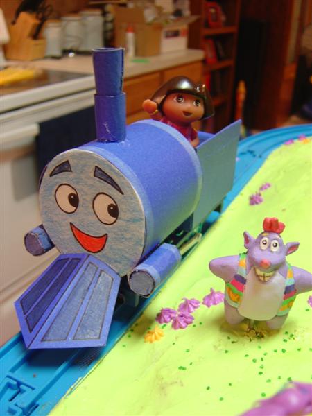 Some people say sometimes less is more. Apparently I don't say that. This one has 9 motors (pushing 15 characters), a train (carrying Dora), and a mp3 player with speaker. The goal was to put our daughters favorite characters from the show. You will see:
