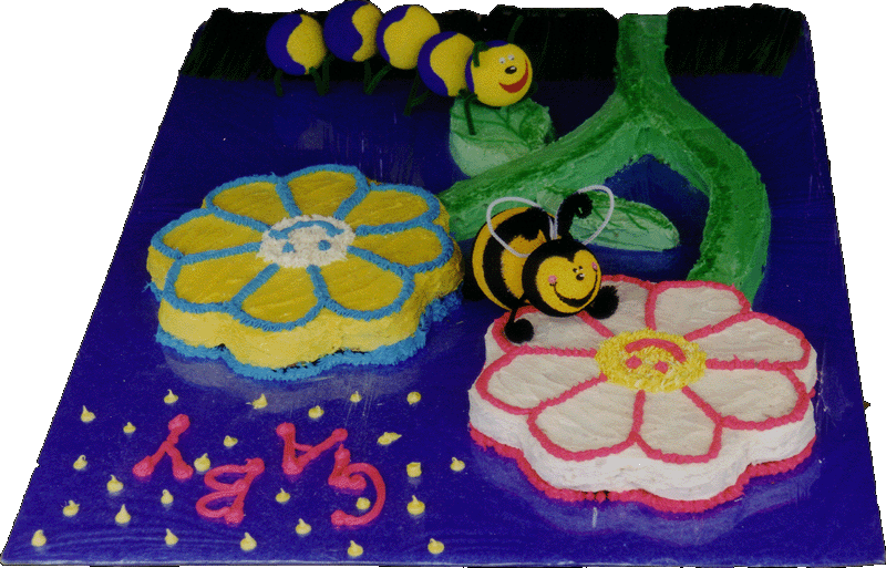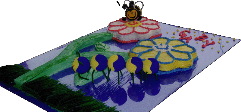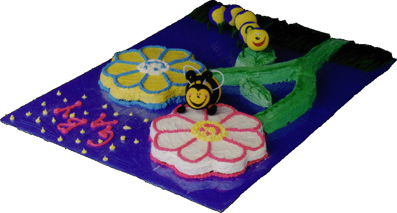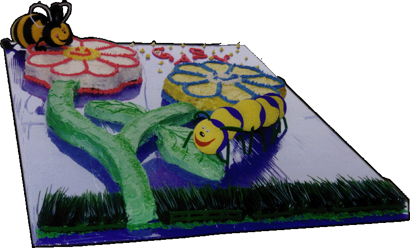 Since doing the treasure chest we have since been "volunteered" to do cakes for family if we're available. I'm not complaining since we really like doing it :). This was a very simple cake and our second theme cake we did. We were visiting so all we got to do ahead of time was make the bugs. This is still one of my favorites. It's a happy cake.