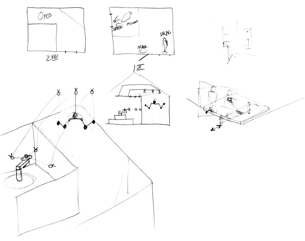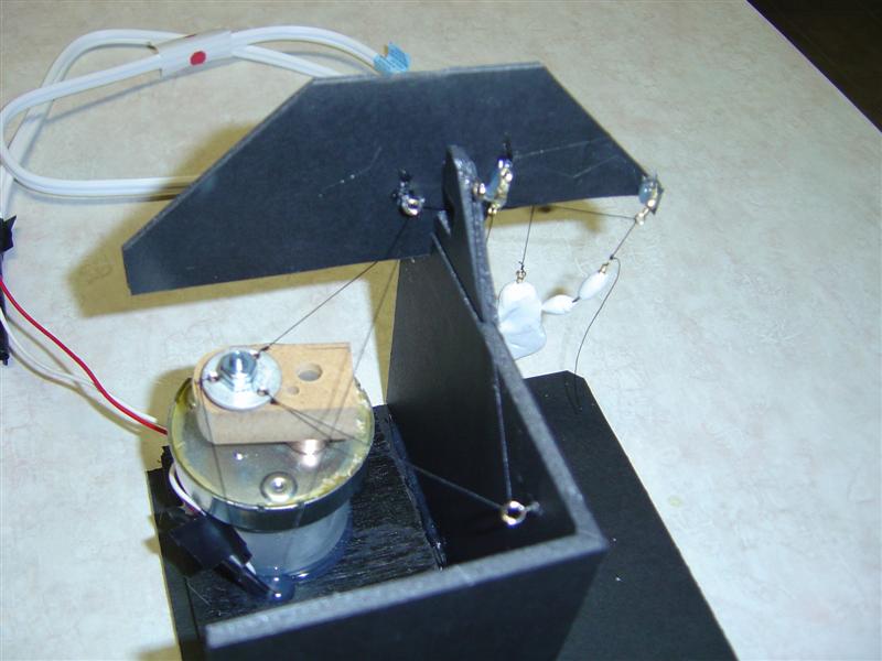 The best part of the cake is the Flying Crank Pepper's Ghost in the haunted house window. The worst part of the cake, no one could see the awesome ghost in the window due to my bad design. Not many people were tall enough to lean over the cake to see in the window and those that were tall enough were too shy to do so. Doh. Ah next time. Have to give credit to the FCG's creator Doug Ferguson here. I've also included the Pepper's Ghost effect to this. If you want to ruin the fun look it up. It's the same effect the Haunted Mansion uses at Disneyland. So if you want to ruin your vacation to Disney, look it up. (Disclaimer: I'm not forcing you to :). The most difficult part of the FCG was finding a material that was light enough to bend on such a tiny ghost. I never did find one but I think the outcome was good enough. I tried shredded paper mache, feathers and a few materials. I finally settled on one white material that was the most heavy but still flexible. It didn't allow the elbows to bend like the other stuff but overall it looked better.We ended up adding fishing weights to the arms to pull them down when the string had slack. They couldn’t be seen in the end product. Here is my initial test before adjustment. Here I've adjusted before adding the material to test.