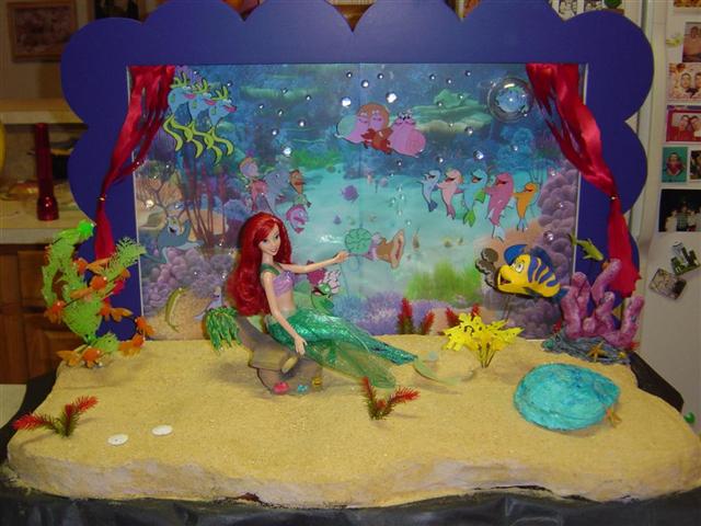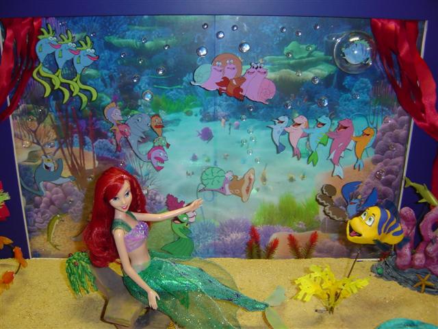 Well, Syd likes the Little Mermaid and Peter Pan a lot. We originally were set on PP but decided against it after noticing that boys generally do PP parties so we changed the Ariel. Either way I think we would have been happy. When we switched we only had about two weeks to the party and hadn't sent the invitation out yet. We had to make moving invitations of course, wow was I ever sick of paper and glue by the end of it. The invites alone took half of the week so we were really pressed for time on the cake. We agreed on the underwater portion of the movie where Sabastian is singing Under the Sea. It would involve fish dancing, water and Ariel singing and dancing. I apologize for the lack of pictures this time, it was a fast a furious cake making this time, no time for pics!