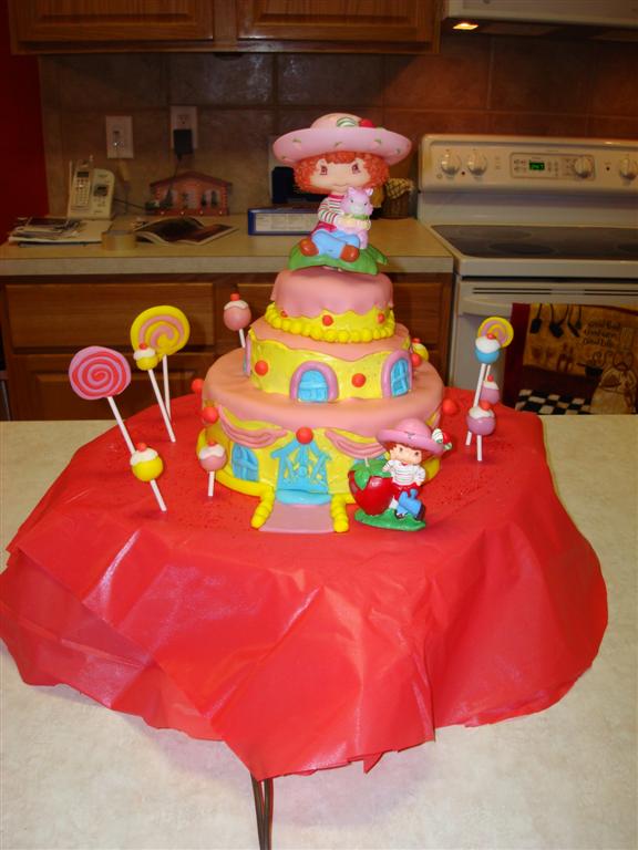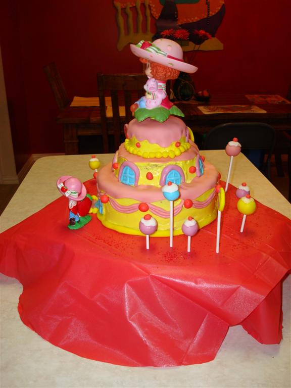 Our niece visited us while it was her birthday. We tried to whip up a Strawberry Shortcake themed cake. She really liked it.