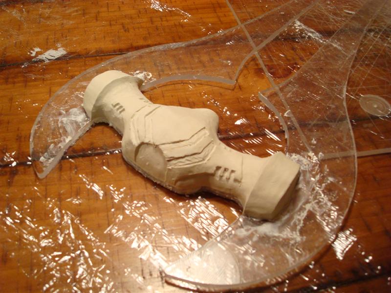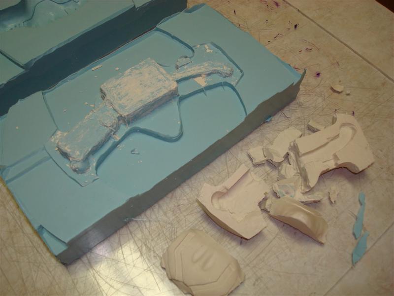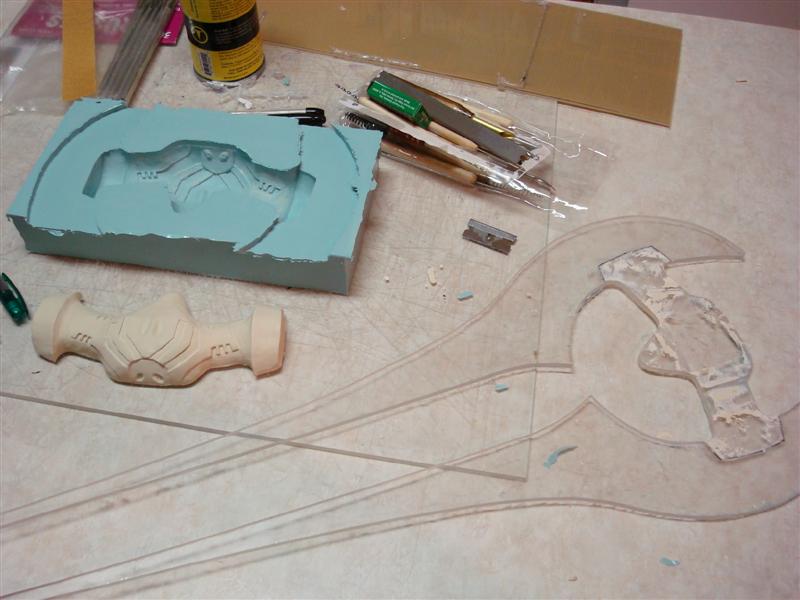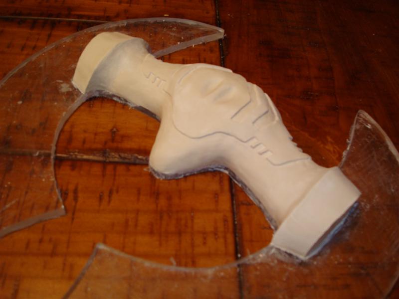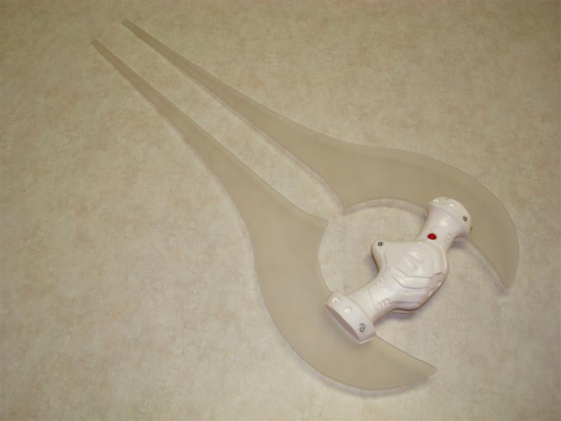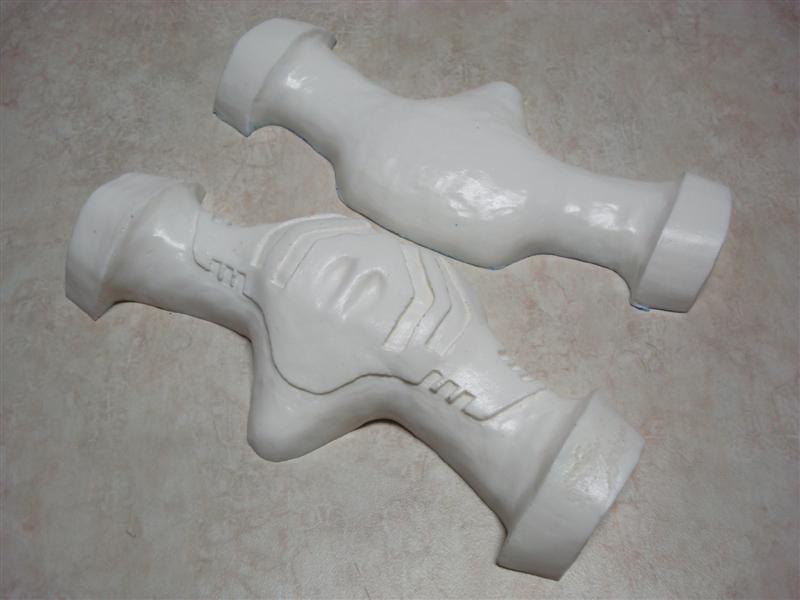 Halo Sword version 2, easier to make. Clayed the handles, 2 sides. Cast in silicone. Cast in resin.