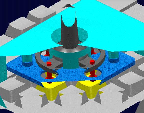 I drew the joystick up in cad for fun really as I already knew I'd be using an old NES Advantage joystick that had broken years before. I wanted the stick to be adjustable to most/all keyboards so I made the contacts to the keys out of machine screws with felt heads so that they could be adjusted up and down. Once the joystick was on the keys it couldn't move because the sides of the stick rested against the keys borders and could be either strapped down or held with a couple large rubber bands.