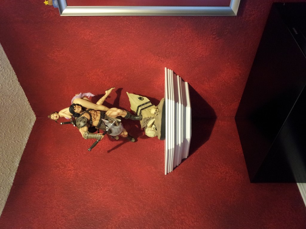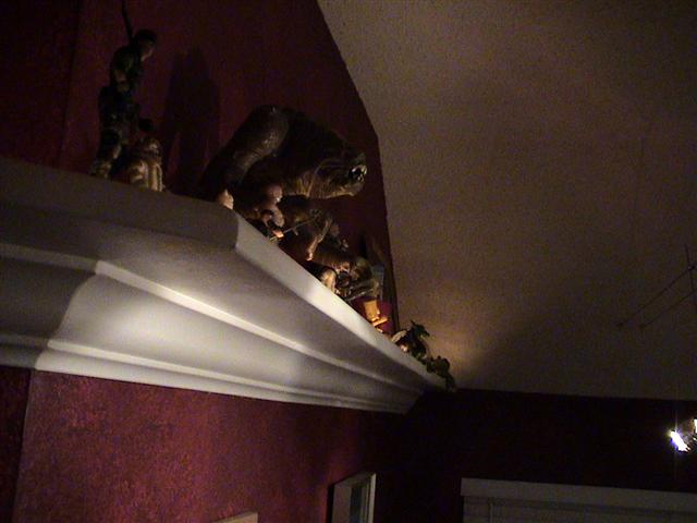 I built some other small shelves for the "nice" figures using crown molding on 3 sides with flats top and bottom. Two for flat walls and one for the corner. Again installed on the wall using cleats.